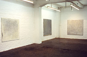 "... ohne Zentrum und ohne dominante Geste hat der Maler mit vielen kleinen Tupfern und Schabungen gleichermaßen geduldig und beharrlich eine dichte Oberfläche aus weißen Nuancen geschaffen, die ein ungreifbares Lichtereignis, eine winterliche Landschaft, ein schwebendes Wollknäuel und eine sanfte Erinnerung ist, die aus der Leere plötzlich auftaucht, um genauso schnell wieder darin zu verschwinden. Äußerste Zurückhaltung ist das Prinzip dieser Bilder, die aus der größten Ruhe heraus einen (Empfindungs-) Raum öffnen, der voller Bewegung ist..."